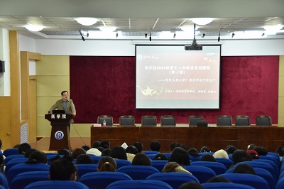 副院长刘毅介绍了学院历史、科研平台、课程设置,助力新生认知专业方向,拓宽知识视野,树立远大志向。正处级巡查员郝军阐释学涯应变之道,助新生开启大学旅程,规划职业发展,适应未来社会发展的关键需求,努力成为国家所需的高端人才。