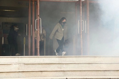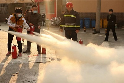 随着宿舍楼内消防警铃的响起,消防演练正式开始,楼管员在按响警铃后,快速持灭火器到达现场,按照“5、30、60”灭火处置程序迅速扑灭初起火灾,并拨打电话报警,打开东西两侧逃生门。同时,指定人员在三楼点燃烟雾弹,学生们在听到警报声后,迅速且有序地跑出宿舍,在楼管员和快速到达现场的老师的指挥下按照应急逃生预案程序沿各层楼梯靠墙一侧迅速有序疏散至一楼东、西、南侧出口。而校内安防人员接到报警后,迅速到达火灾现场,利用楼内消防设施—灭火器、室内消火栓打开消防水带展开灭火,帮助老师组织学生迅速撤离火灾现场,疏通楼外消防通道,保护火灾现场等工作。在逃生过程中,学生们做到了明确路线,迅速逃生,不拥不挤,有序撤离,并用自备的毛巾捂住口鼻,表示对演练的认真重视。逃生演练结束后,学生们在安全管理处消防科工作人员指导下分组进行模拟灭火实战演练。消防科工作人员也仔细认真地为学生们讲解如何正确使用消防工具,并对学生们的相关问题进行一一解答。