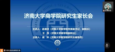 学院党委副书记、副院长孟德洋主要讲了学生在校期间如何做好安全防范、疫情防控、心理健康等方面工作,指出安全问题是首要问题,不能有任何侥幸心理,要时刻提醒学生,做好财产、人身、网络、金融等方面安全;提高对疫情防控工作的重视程度,严格遵守学校和社区防范规定,提高防范意识,非必要不离济,积极配合疫情防疫工作;引导学生注意身体健康与心理健康共同发展,注重饮食和锻炼,家长要多与学生沟通,关注孩子心理状态,做好疏导,给孩子减压减负,引导学生培养优良品质,促进学生健康发展。最后,给家长们提出了几点要求和建议:要与学生加强沟通交流、了解学生想法和情感、关注学生学业科研、引导孩子就业择业、教育学生遵章守纪。
