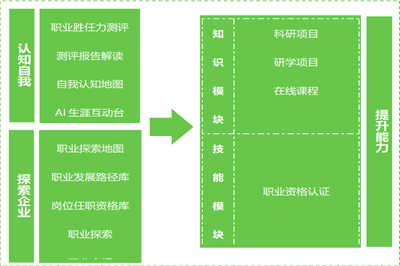 服务流程:咨询预约→生涯测评→报告解读→名企虚拟工作体验/金融仿真实践项目→职业发展路径库/岗位任职资格库。