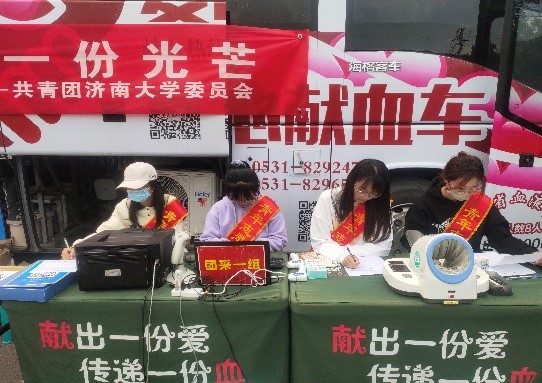舜耕校区第六食堂门前举办了“热血传情,爱润新生”无偿献血志愿服务活动。