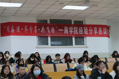 的推免政策,并对学分加权平均成绩做出了解释,最后结合自己的保研经历向同学们讲述了如何提高自己的推免竞争力等重要问题;赵雨晨学长则就目前的推免形势进行分析,指出了择校和面试的基本思路,并针对经管类专业、理工类专业,跨专业申请发表了自己的独到见解。同学们全程认真聆听,并对保研相关事项有了更全面深入的了解。恳谈会后,亦有不少同学主动与学长们沟通交流,表达自己的想法与困惑,得到了学长们的细致解答,会议氛围融洽,同学们受益匪浅。