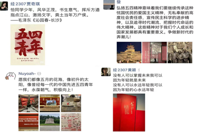 活动期间,各团支部结合实际情况,在团支书的带领下开展了一系列主题活动。在“青春接力跑:青春印象”系列网上主题团课学习和“五四精神永传承,青春奋斗正当时”线下讨论会上,团员和青年们认真学习、围绕“五四精神”、当代青年的责任与担当等话题积极讨论,现场气氛热烈,同学们以不同角度抒发了对“五四精神”的理解和感悟,用铿锵的语言表达自己对为实现中华民族伟大复兴而奋斗的决心和信心。此外,团员和青年们通过“五四之光”主题摄影作品征集活动,用镜头记录了身边关于弘扬和传承“五四精神”的瞬间,加深了对“五四精神”理解,凝聚了青春心向党,建功新时代的磅礴伟力,让红色基因、革命薪火代代传承。