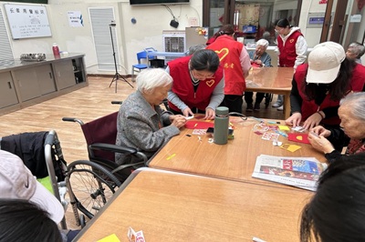 活动现场欢声笑语不断,爷爷奶奶们脸上洋溢着幸福的笑容,纷纷向志愿者们竖起大拇指。“这些孩子真有心,陪我们做手工,还给我们送祝福,心里暖暖的!”张爷爷拿着福袋,笑得合不拢嘴。