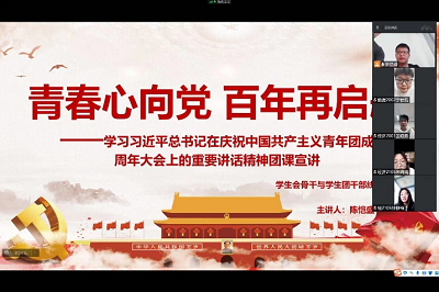 全体学生团干部和团员青年深刻认识了习近平总书记在庆祝中国共产主义青年成立100周年大会上的重要讲话精神,并决心厚植爱国、爱党情怀,自当壮志凌云,挂云帆而济沧海,争做有抱负有责任有担当的新时代青年!