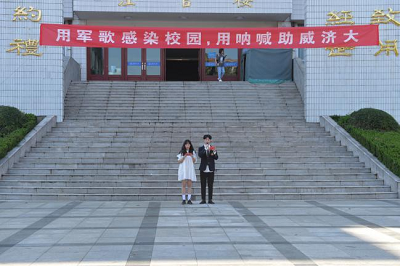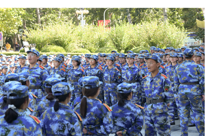 自律会在经管楼广场举办“百年峥嵘心向党,军歌嘹亮筑华章”军训拉歌大赛。