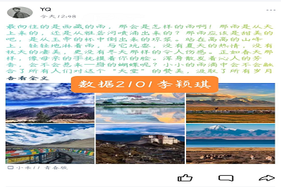 活动前期,志愿者们采用线上方式进行广泛宣传,同学们积极响应,纷纷进入活动群了解活动内容。活动当天,同学们在QQ空间和朋友圈等社交媒体上介绍自己喜欢、向往的城市,并将截图上传至QQ群相册。同学们不仅展现出了自己心中所憧憬的风景,而且用文字、图片的形式将美丽的景色生动形象地表达出来,表现了少年对于远方的向往和那颗飞扬的心。