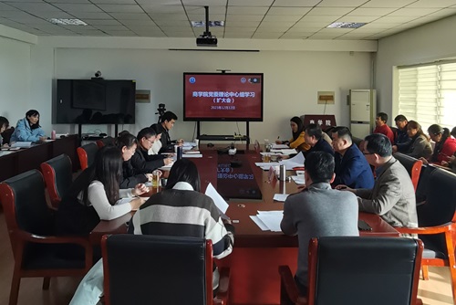 党委理论学习中心组进行集体学习,学校党委宣传部副部长刘怀柱等列席指导,学院党委理论学习中心组成员、各系主任、支部书记、全体科级干部、辅导员代表参加学习。学院党委书记彭亚宁主持学习会。