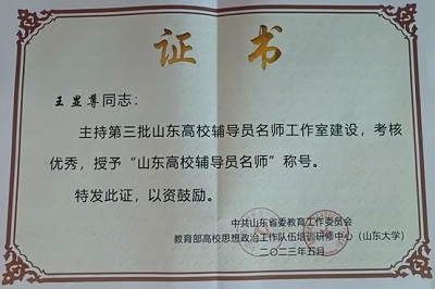 我院王显尊副教授荣获“山东高校辅导员名师”称号